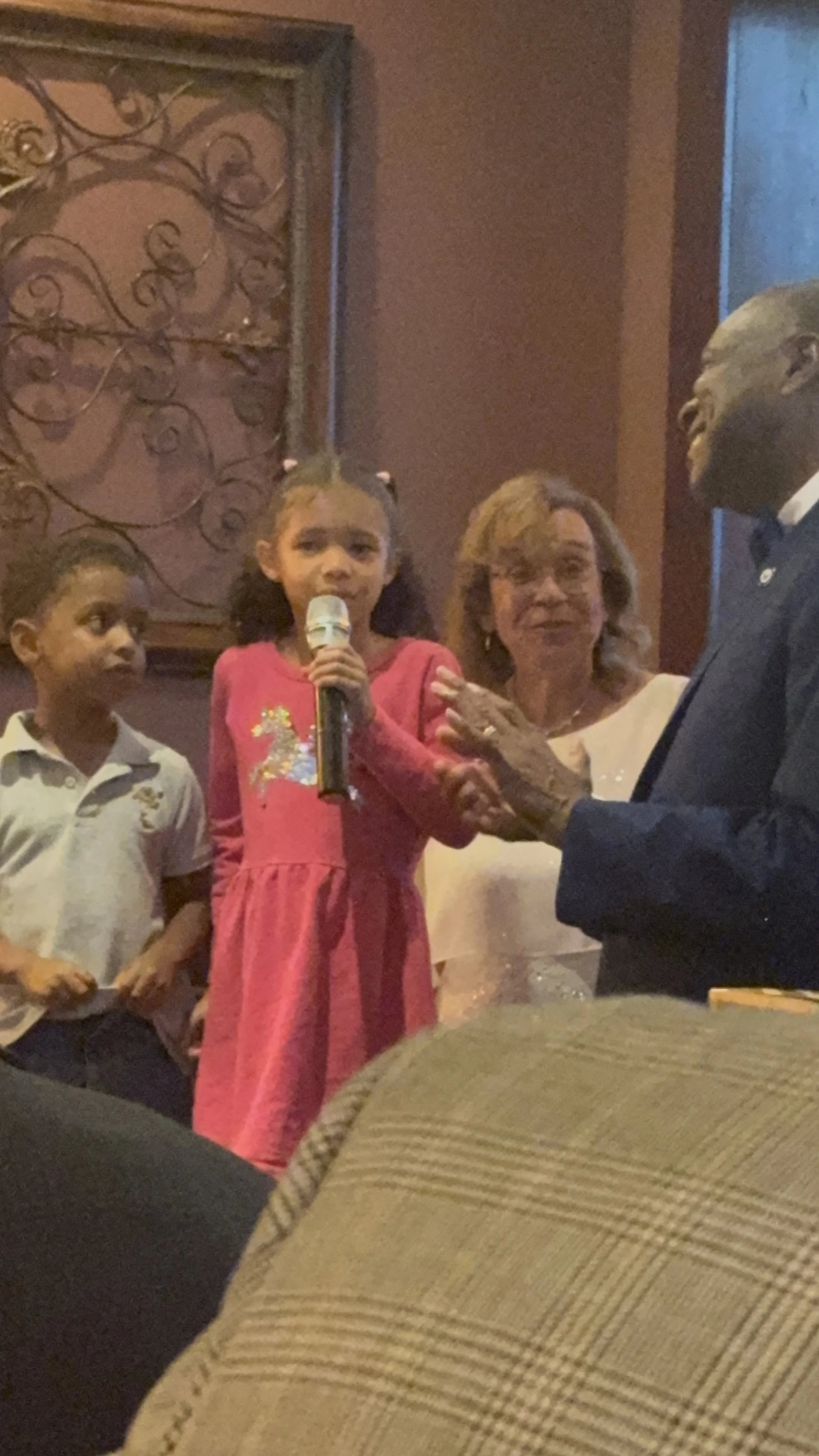 Zaria (age 7) and Cairo (age 5), two of Dr. Berry’s grandchildren, sing Happy Birthday to GrandDad.
